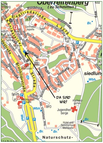 Wegbeschreibung zur Party Königsteiner Str. 11 - 61389 Schmitten Oberreifenberg Hallo Kind und Kegel, hier ist die Wegbeschreibung zu unser Party. Ihr fahrt auf der A 661 in Richtung Königstein / Bad Homburg / Oberursel (auf jeden Fall nicht in Richtung Frankfurt / Offenbach) Der 661 folgen, bis sie aufhört. Sie wird dann einspurig und geht in den Wald hinein. Nach kurzer Zeit geht es rechts ab, Richtung Schmitten. Es kommt ein kleiner Kreisel, die nächste Abfahrt direkt wieder raus - nach Schmitten. Nun kreuz und quer über den Taunus. Auf der Kuppe (Sandplacken) geht es dann links nach Oberreifenberg und Feldberg. Nach ca 100 Metern wieder nach rechts - Oberreifenberg. Wieder kreuz und quer durch den Taunus. Dann quer durch Oberreifenberg und fast bei der Ortsausfahrt - da sind wir dann! Die Einfahrt ist genau an der Ecke Feldbergstraße am Zebrastreifen. Bitte fahrt nicht in die Zufahrt rein, da wir auch im Hof feiern. |